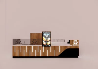 A pesar de su tamaño compacto, el kiosco cuenta con una disposición inteligente que facilita tanto el flujo de trabajo como la comodidad del cliente. Las áreas de atención, preparación y exhibición se diseñaron cuidadosamente para maximizar el espacio sin comprometer la estética ni la eficiencia operativa.